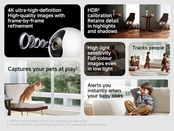 | Pet Tracking | Automatically detects and tracks pets. |