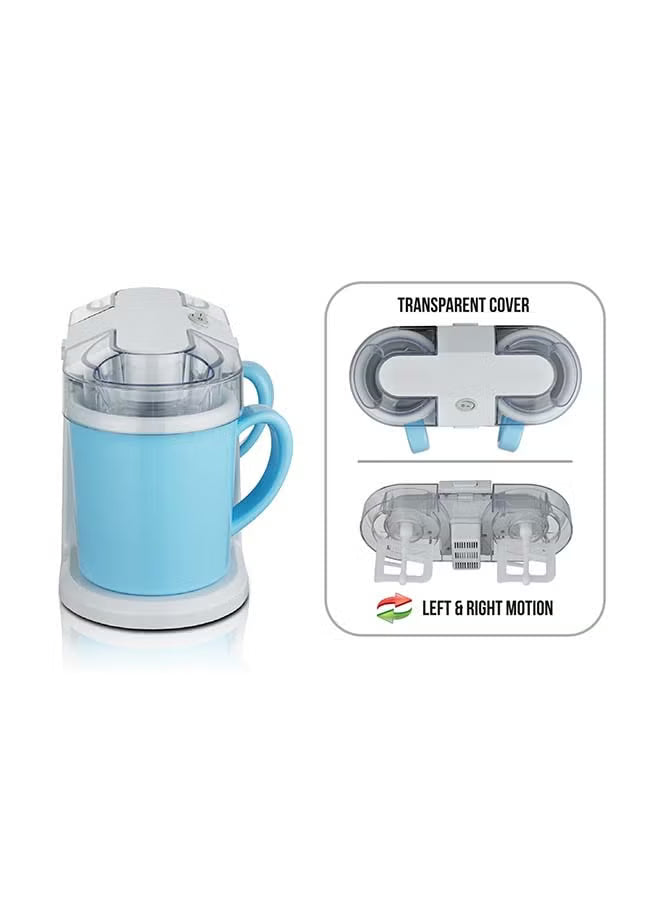 | Description | Compact ice cream maker with stainless steel housing, quick-freeze cups, copper motor, and reversible motion for making ice cream, sorbet, and frozen yoghurt easily at home. |